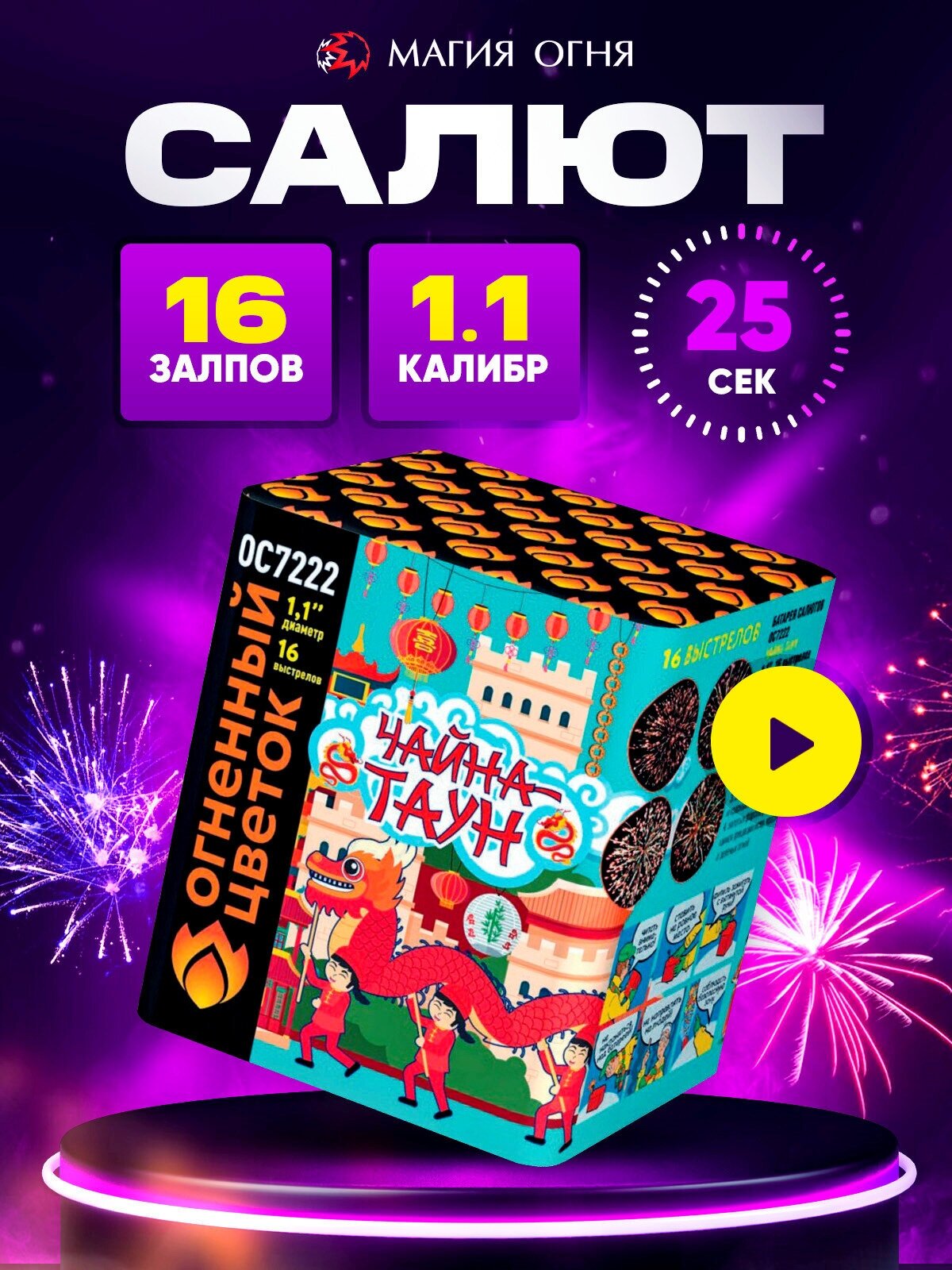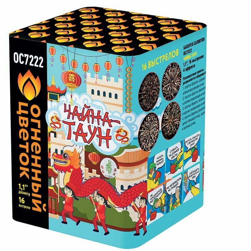 Батарея салютов Огненный цветок Чайна-Таун ОС7222, 16 залпов