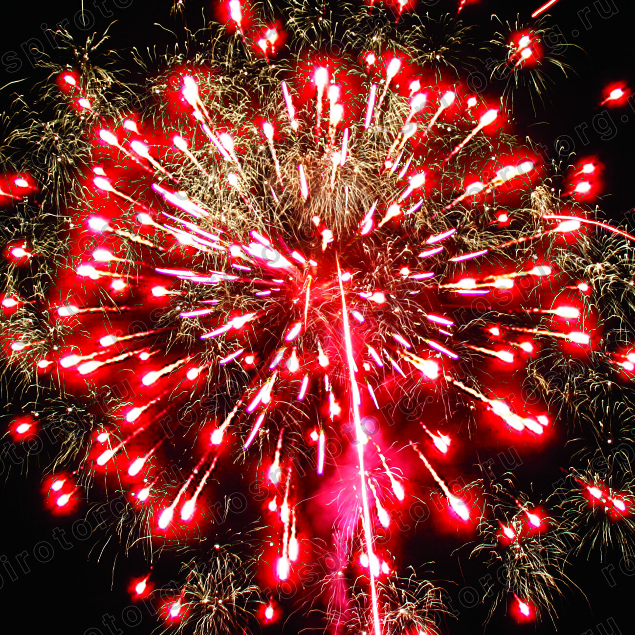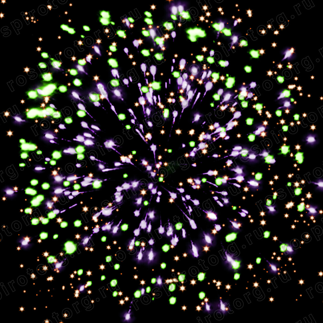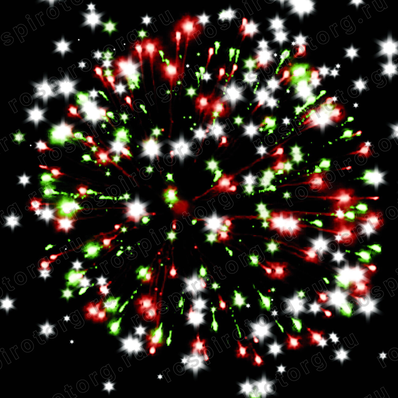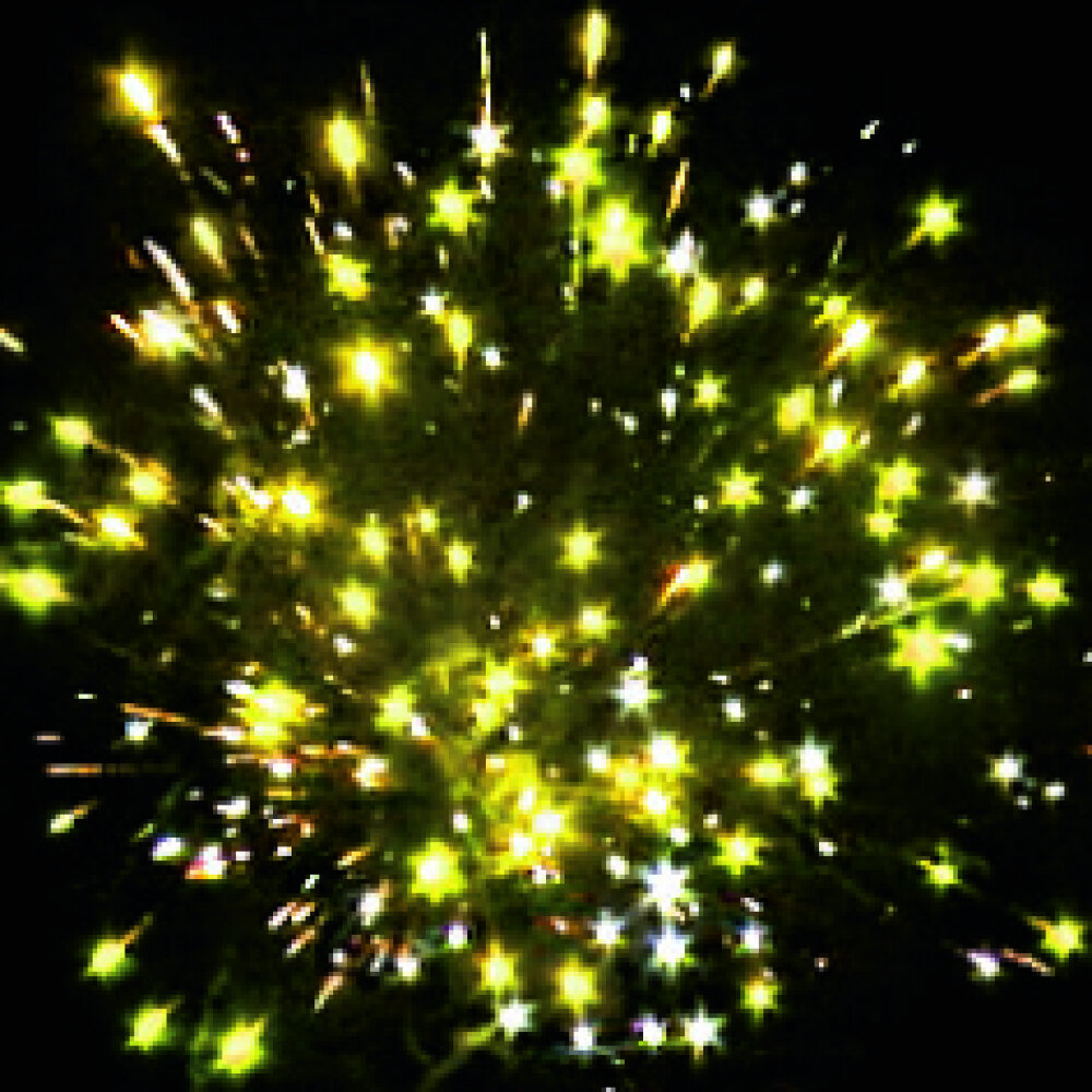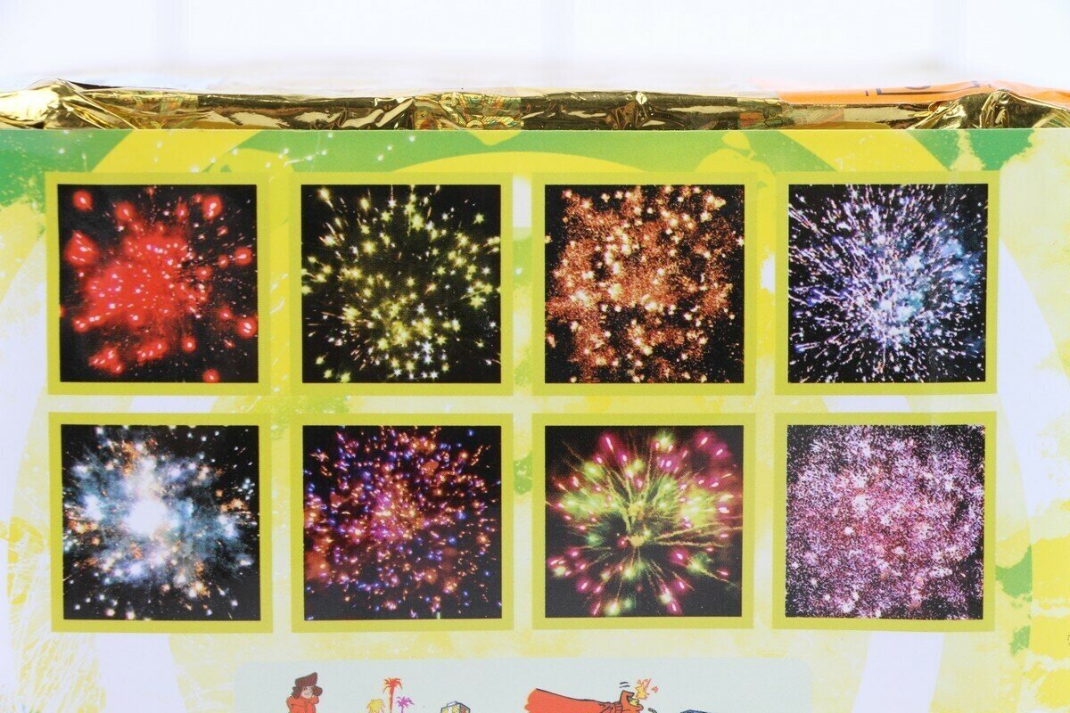 Батарея салютов содержит 80 залпов, каждый из которых обладает уникальным эффектом. В их числе: красная и желтая сферы (пион), трещащая сфера, белая мерцающая сфера (пион), сине-желтая и зелено-фиолетовая сферы (пион), а также облако треска (трещащая хризантема).