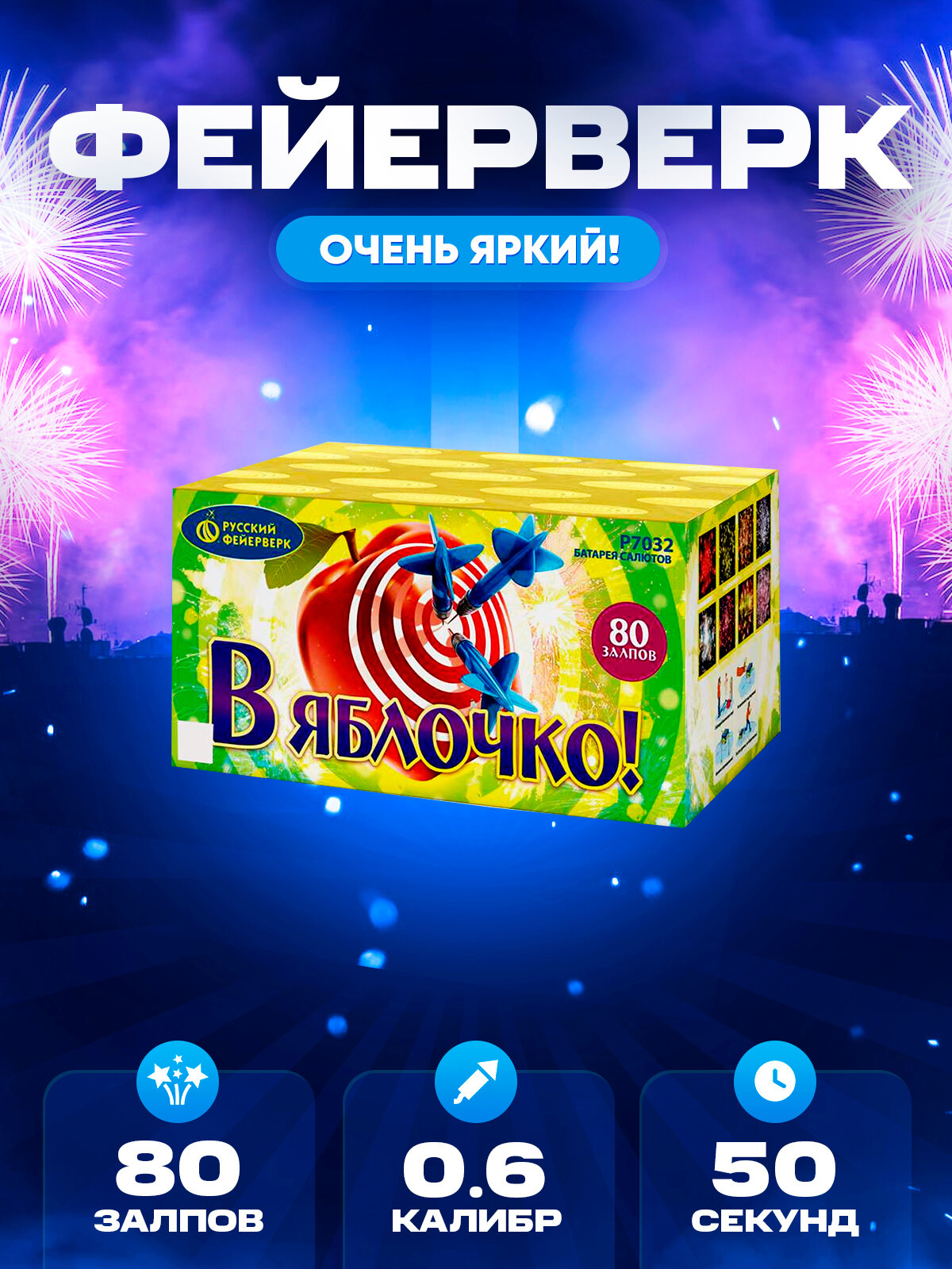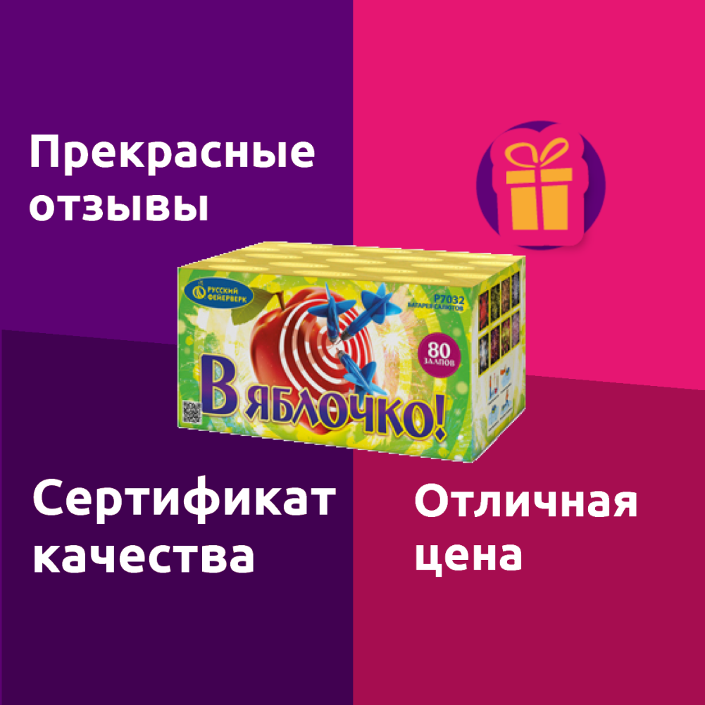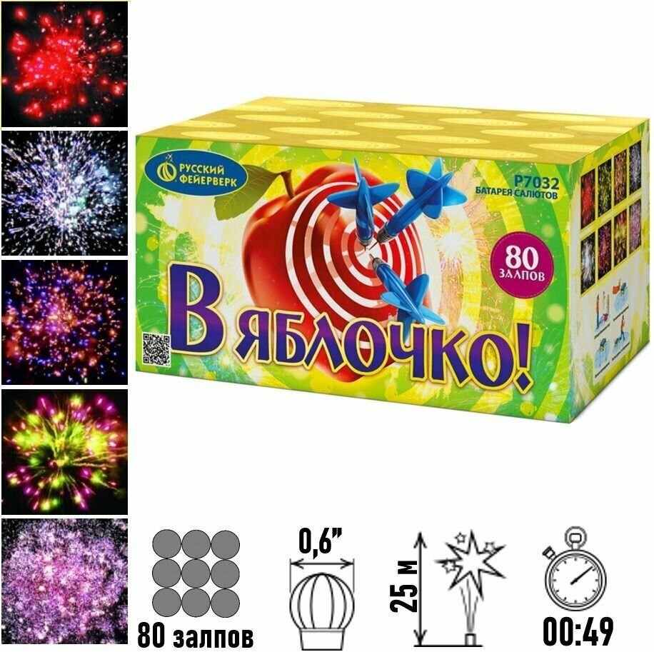 Батарея салютов "В яблочко!" Р7032 от Русского Фейерверка - это впечатляющее зрелище, которое подарит вам и вашим гостям незабываемые эмоции.