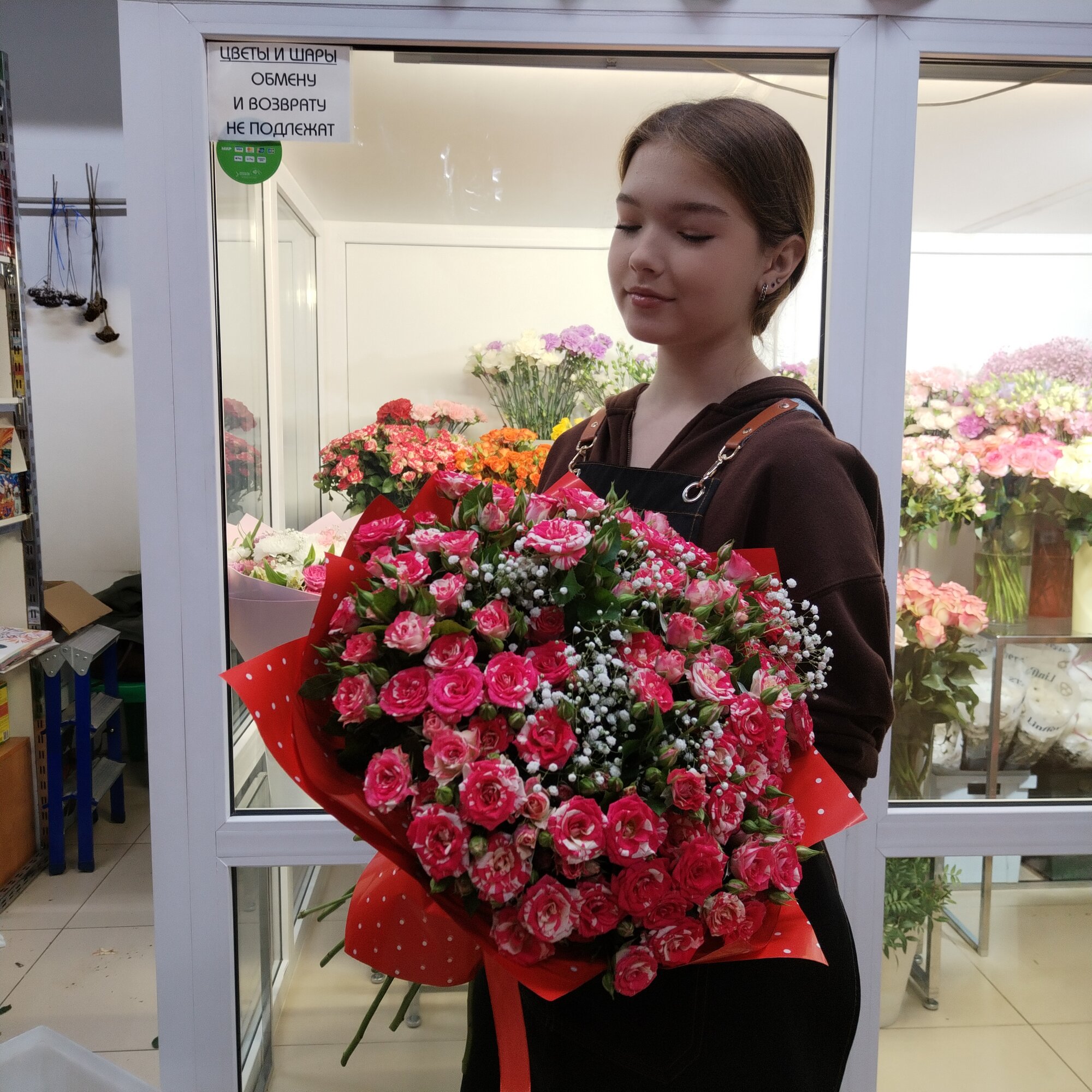 Букет выполнен из 19 кустовых роз, которые отличаются своей пышностью и нежностью. Кустовые розы - это разновидность роз, которая характеризуется наличием нескольких стеблей, растущих из одного корня. Благодаря этому, розы сохраняют свою форму и не теряют свежести дольше, чем обычные розы.