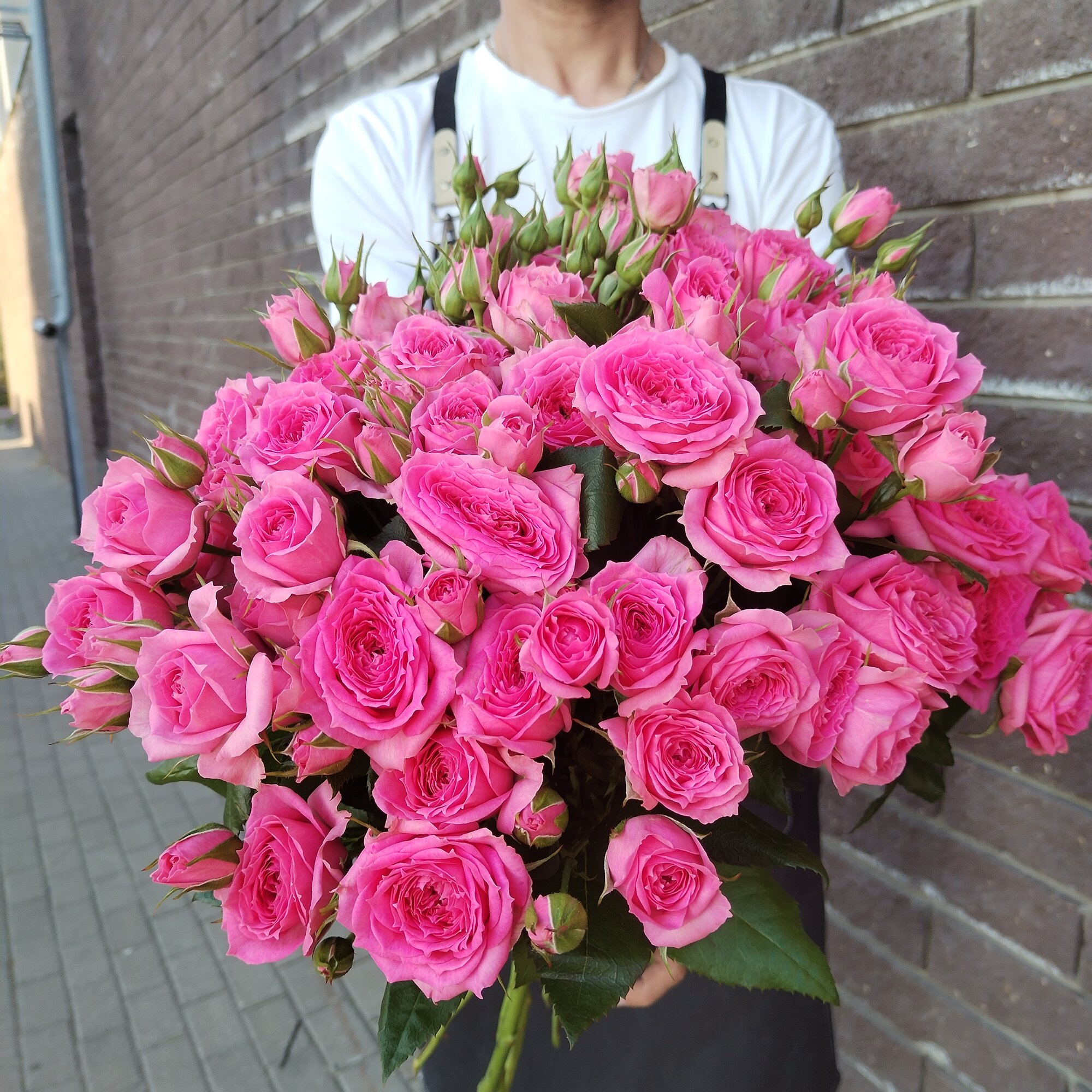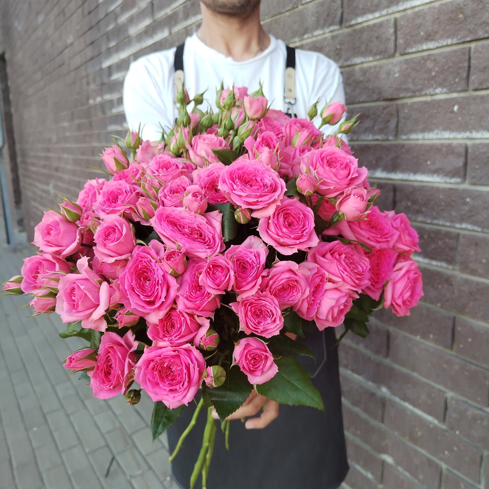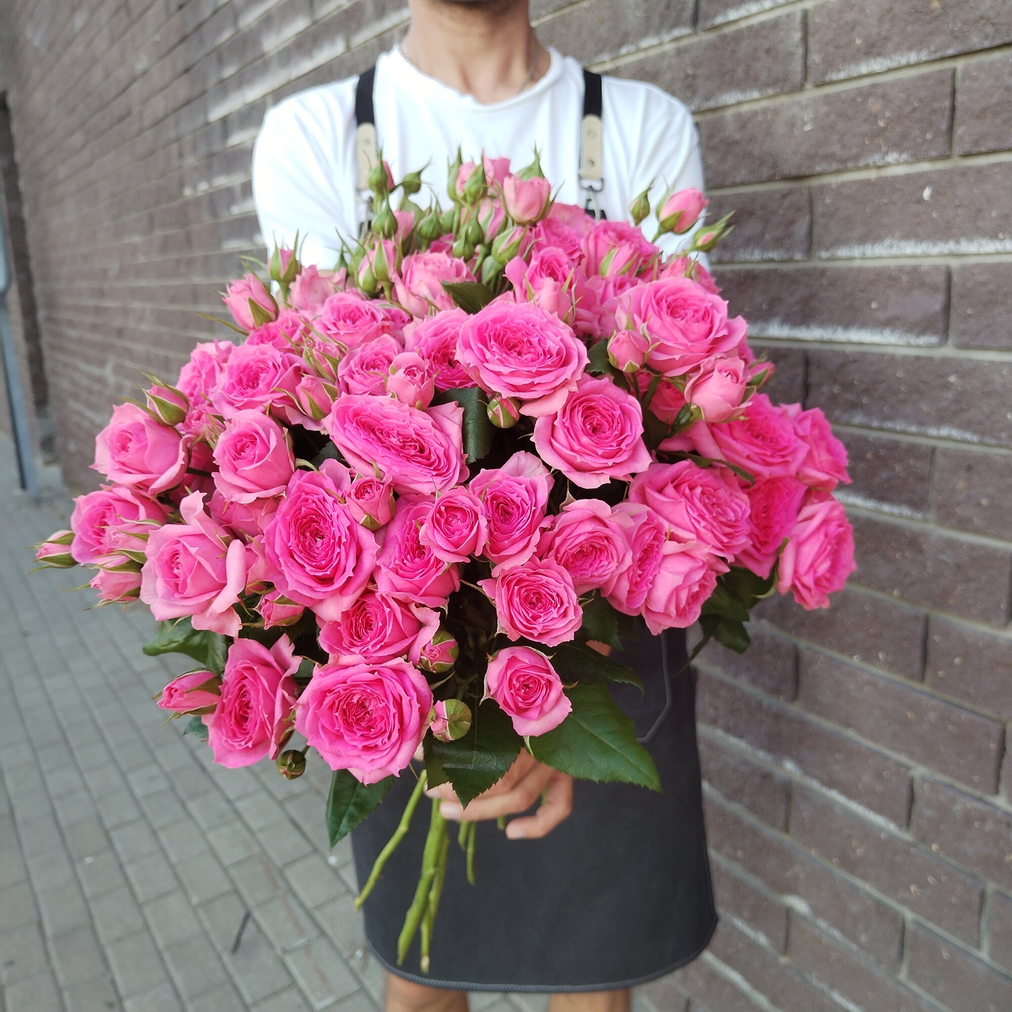 Букет состоит из 9 кустовых роз, которые отличаются своей пышностью и объемностью. Благодаря этому, букет выглядит особенно впечатляюще и привлекает внимание.