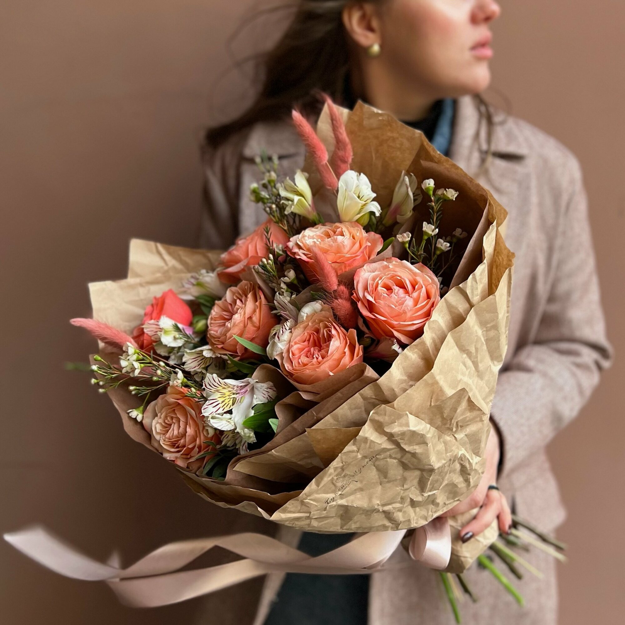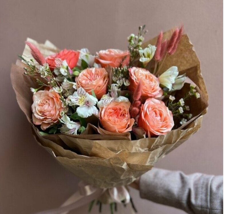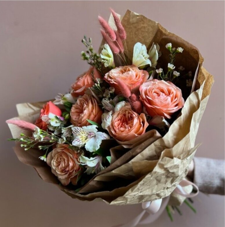 ▪️ Обратите внимание, что букет оформлен в жатый крафт.