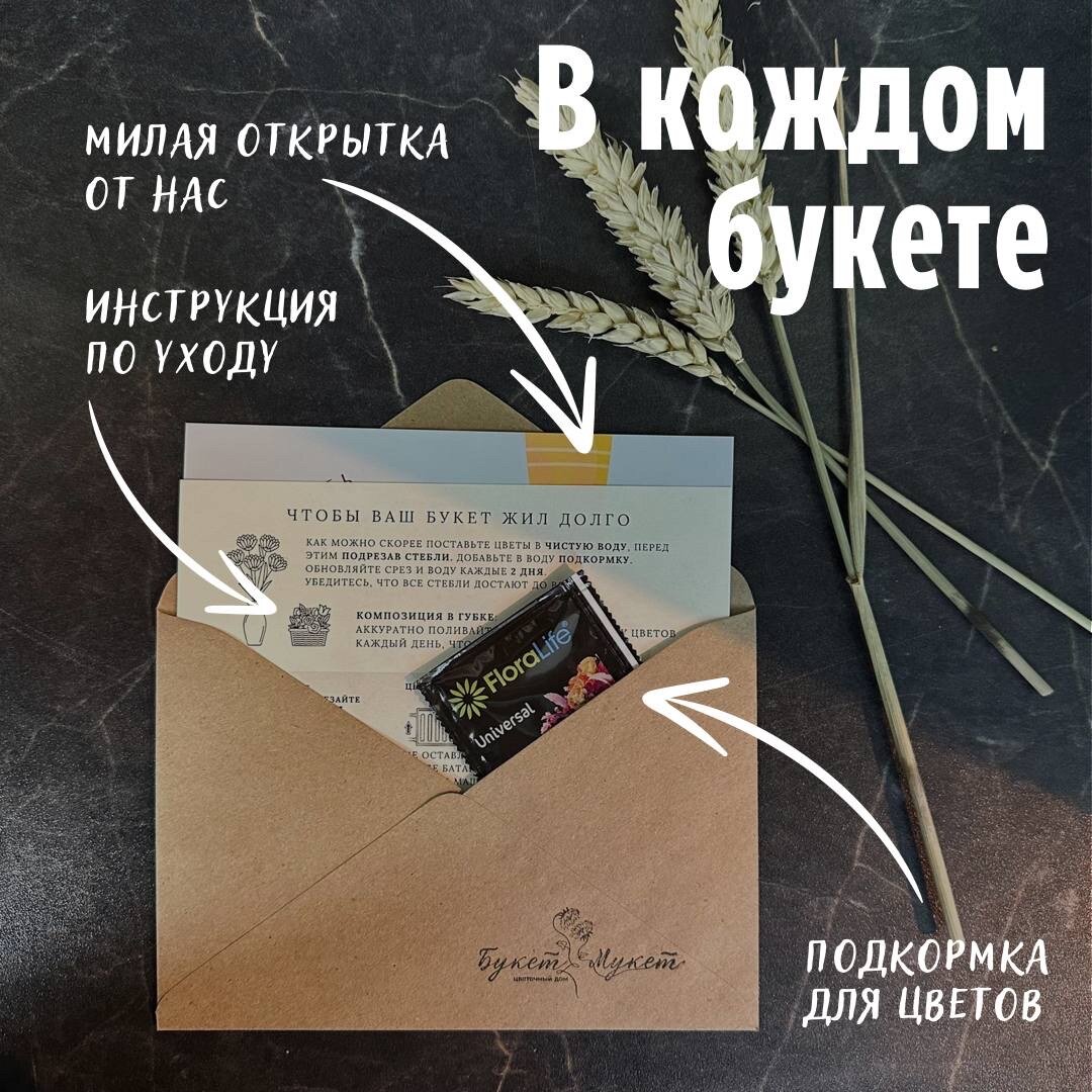 ▪️ Следуйте инструкции по уходу, которую мы вкладываем к каждому букету, и букет будет радовать вас долго!