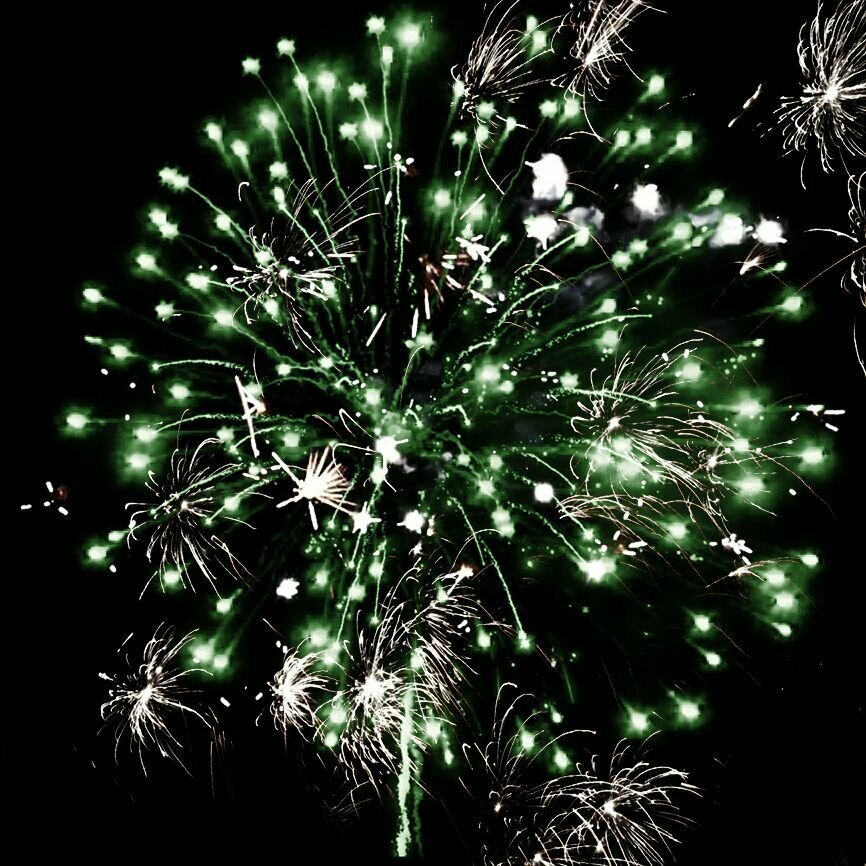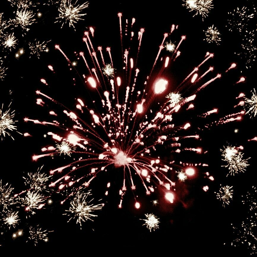 Эффекты (изображены на картинке): Разноцветные кометы разрываются сферами из:1. красных и серебряных трещащих огней;2-3. синих, зелёных огней и серебряных трещащих искр.