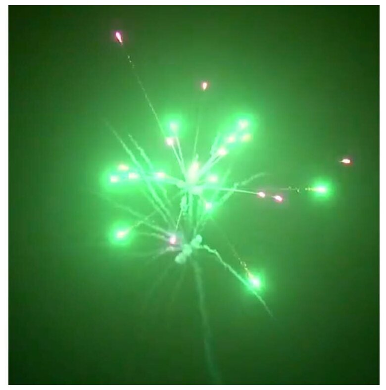 Фейерверк "Верные друзья" от "Русской пиротехники" станет идеальным дополнением к веселой дружеской вечеринке! Только не забывайте, что запускать салют нужно на трезвую голову, не рискуйте! В этой яркой и красочной батарее 4 разнообразных пиротехнических эффектов и 48 зарядов, вылетающих на высоту 10-ти этажного дома. Начавшись с мощного и громкого взрыва, эта батарея мгновенно завладеет вашим вниманием, заставляя сердце биться быстрее от предвкушения невероятного зрелища. Вы погрузитесь в захватывающее и впечатляющее шоу, которое превратит небо в настоящий калейдоскоп ярких и красочных огненных фейерверков! Эффекты (изображены на картинке): Разноцветные кометы разрываются сферами из: 1. зелёных и фиолетовых огней; 2. красных и белых мерцающих огней; 3. красных и зелёных огней; 4. красных и трещащих огней. В финале красочный залп.
