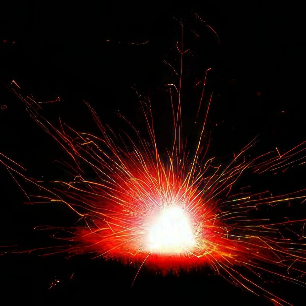 Крутится, образуя круг красного, зелёного, жёлтого огня, в конце треск