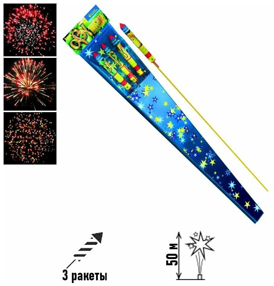 С таким замечательным фейерверком Ваш праздник запомнится гостям надолго. Ракеты взрываются в небе разноцветными сферами и хвостами, которые издают трещащие звуки. Салют с тремя зарядами поднимается на 40 метров!