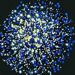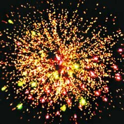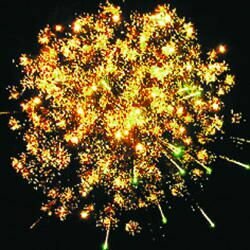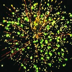 4) Зелено-фиолетовая сфера (пион) и облако треска (трещащая хризантема).