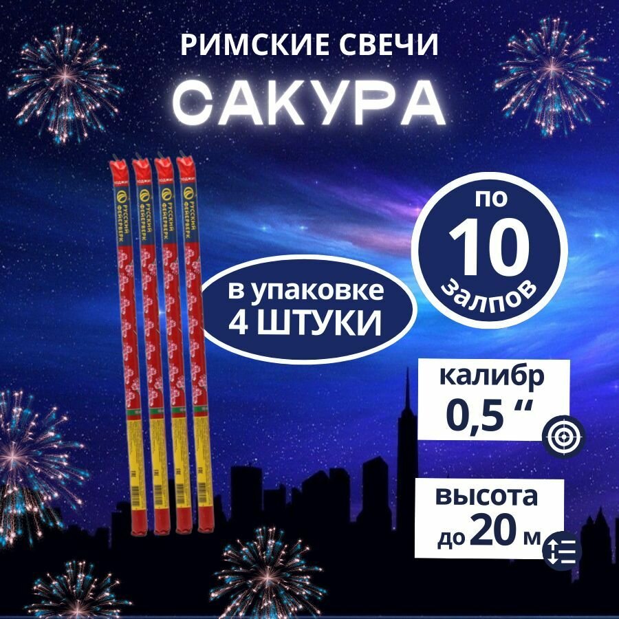 Римская свеча "Сакура", 0,5" х 10 залпов,