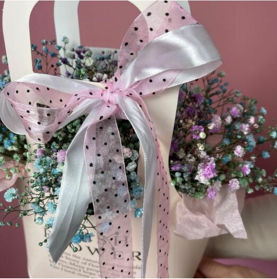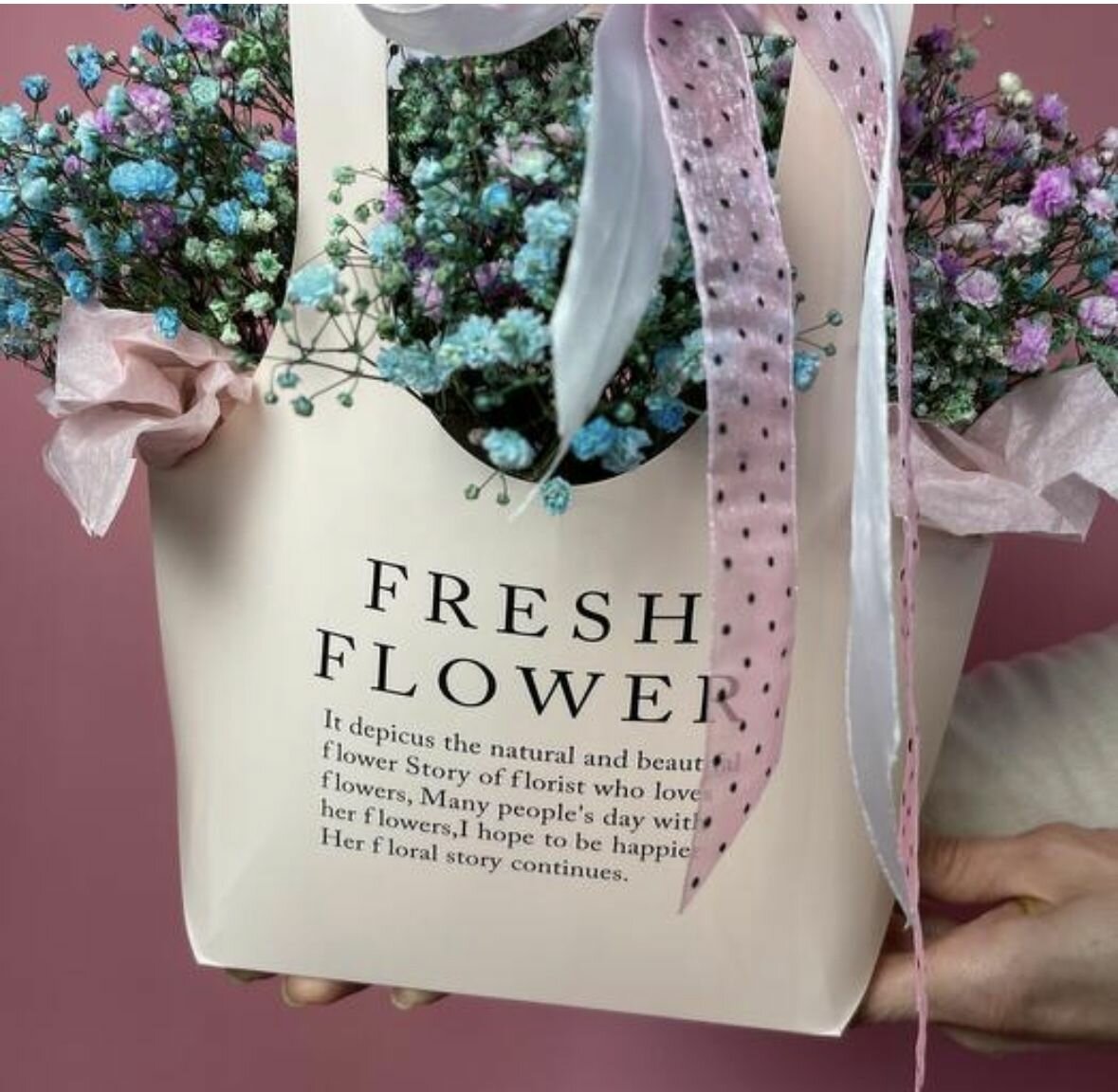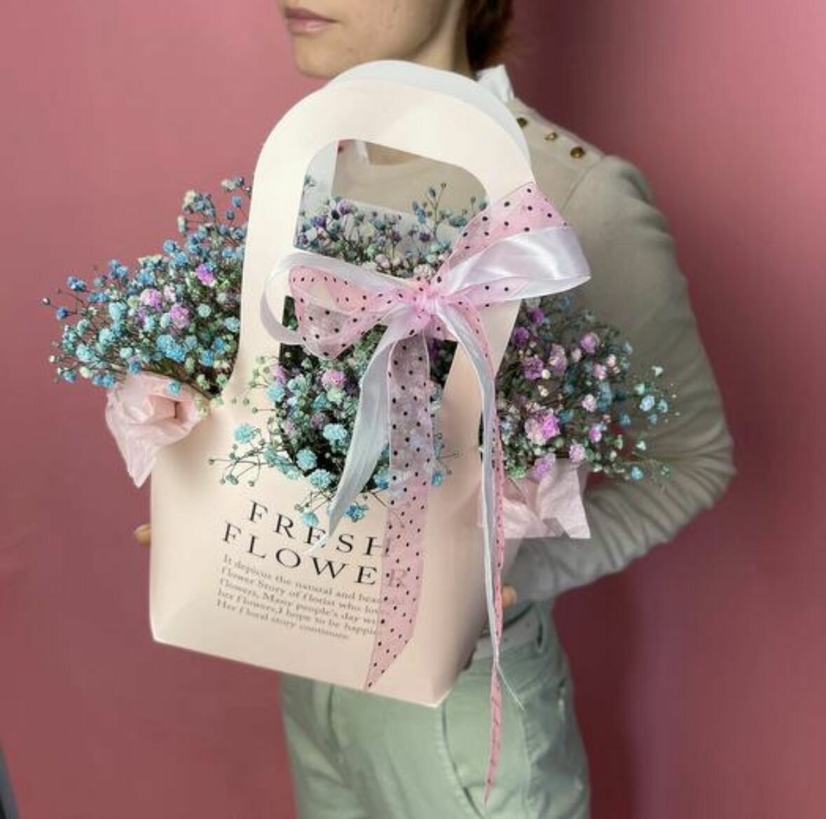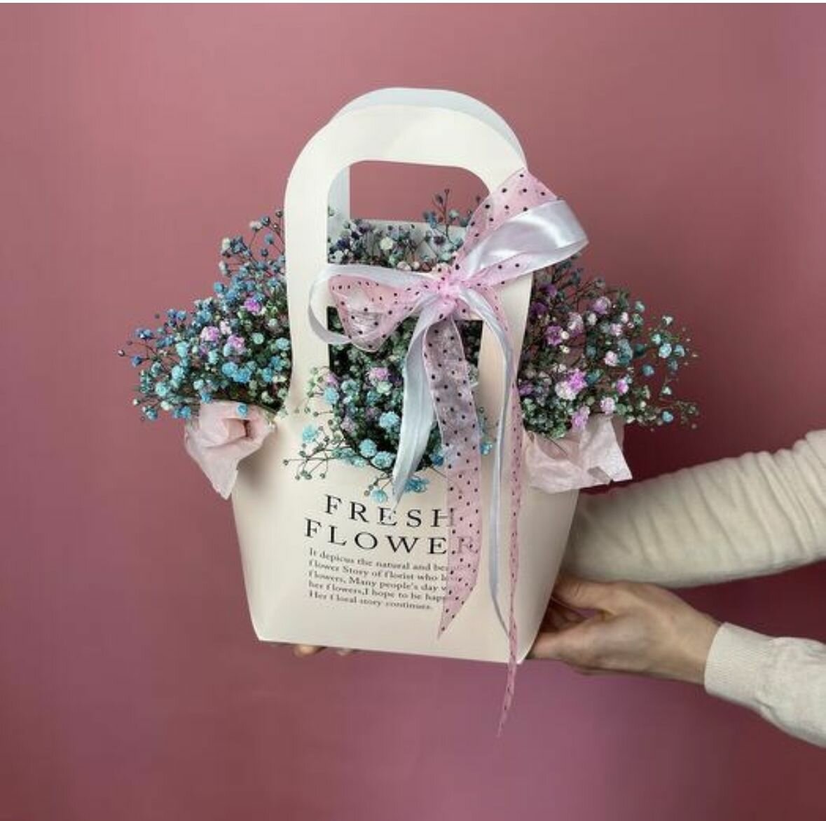 Наши композиции в сумочке из гипсофилы идеально подходят для любого случая и станут прекрасным дополнением к любому интерьеру. Пусть этот букет станет символом ваших теплых чувств и заботы.