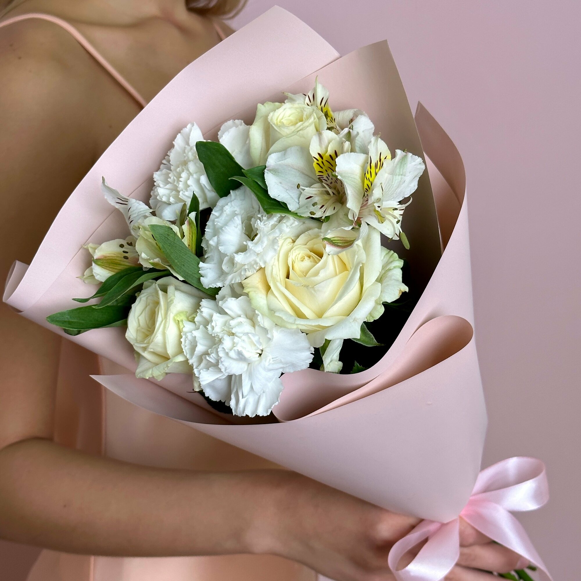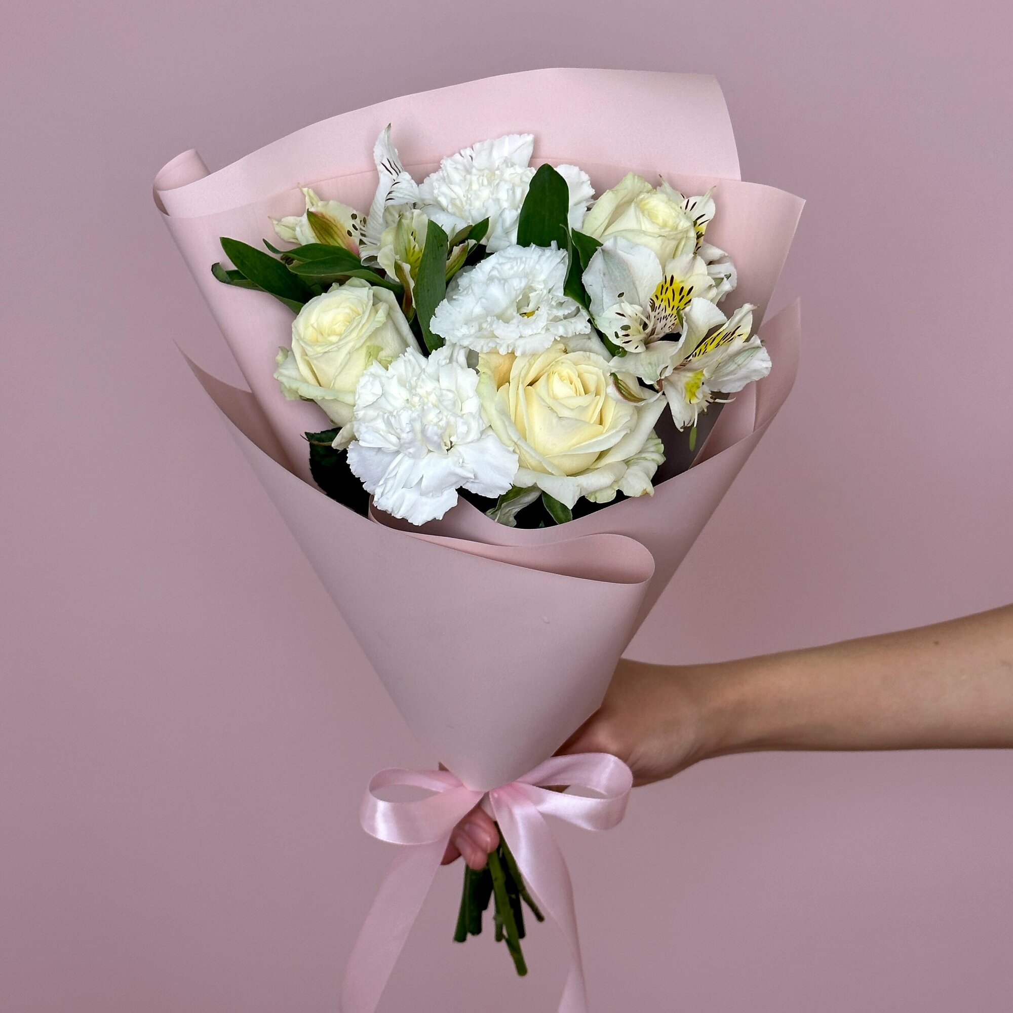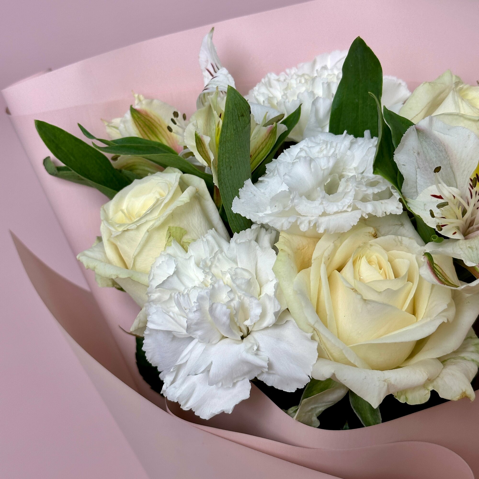 Букет живых цветов - это изысканный и стильный подарок для любого случая! Букет состоит из роз, альстромерий и эустом, которые подарят ощущение свежести и красоты. Он идеально подойдет для мамы, коллеги, бабушки, женщины, делового партнера, учителя, любимой, ребенка, мужчины и многих других.